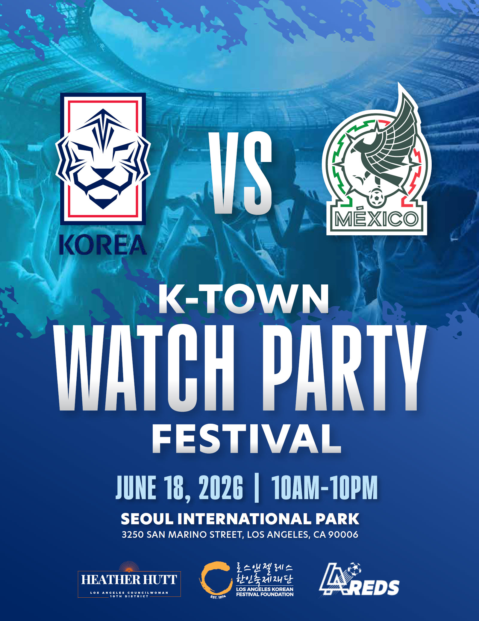 Enjoy the World Cup Watch Party for the Korea vs. Mexico match on June 18, 2026 at Seoul International Park (3250 San Marino St., Los Angeles)