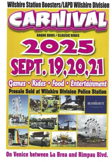 Join the Wilshire Station Boosters and LAPD Wilshire Division for a fun-filled weekend at the annual Carnival. Enjoy rides, games, delicious food, and live entertainment for the whole family.
