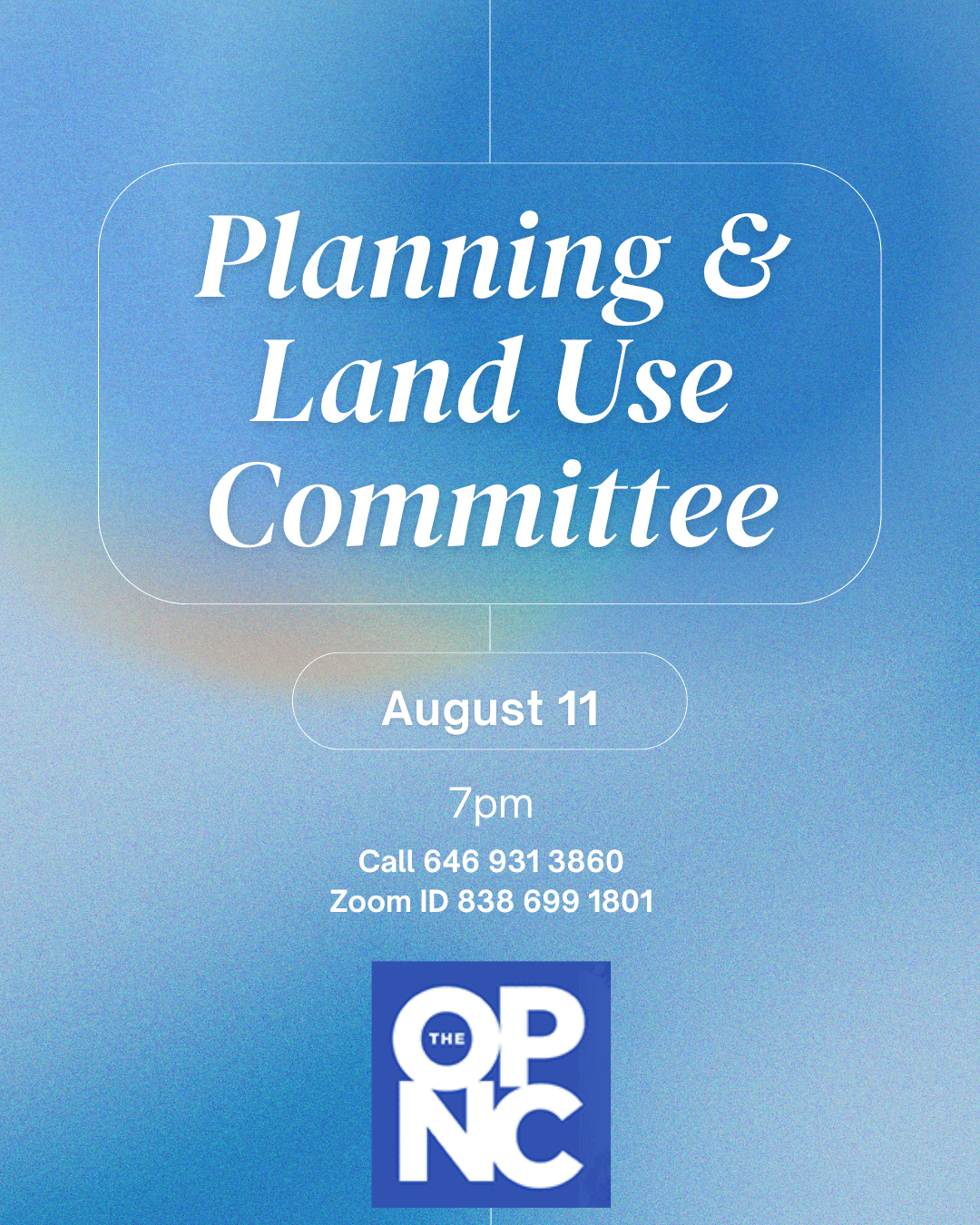 Join us online for a Planning and Land Use Committee Meeting August 11, 7pm.